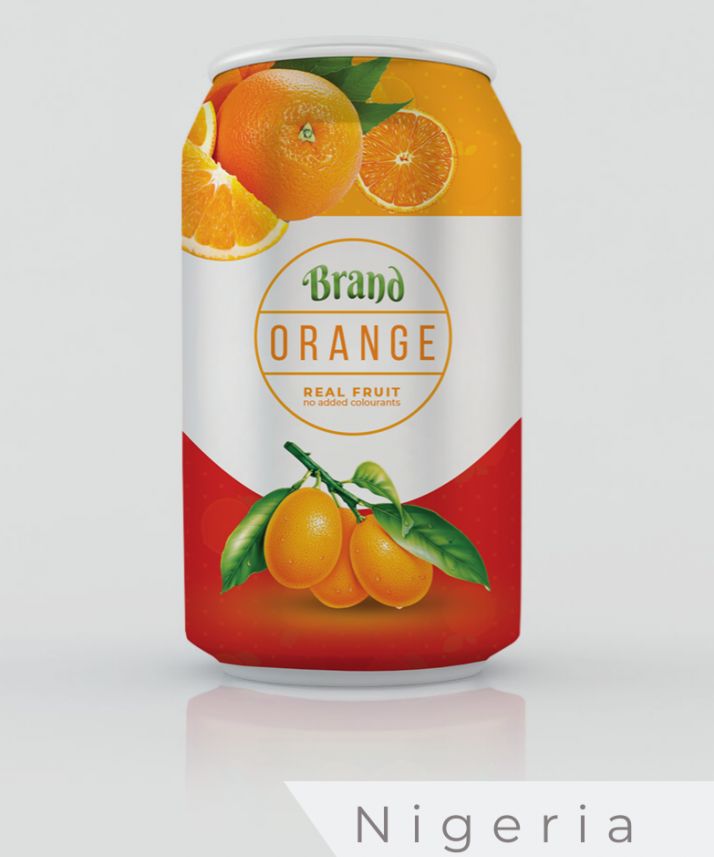 The designer from Nigeria looked to the brands that were already on the shelf. The aim here was to create a carbonated can design that would compete with what already exists in the shop. From this exploration of the marketplace came generic choices, the use of the fruit as the main selling point of the brand. The emphasis is on brightness and vibrancy, making the can appealing from a distance, so the buyer has purchased with their eyes before selecting the product.