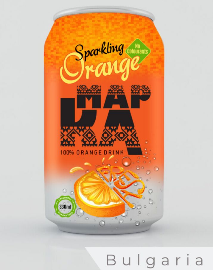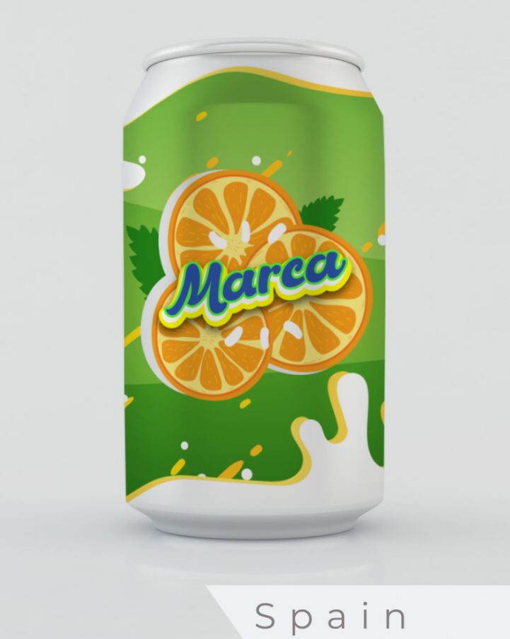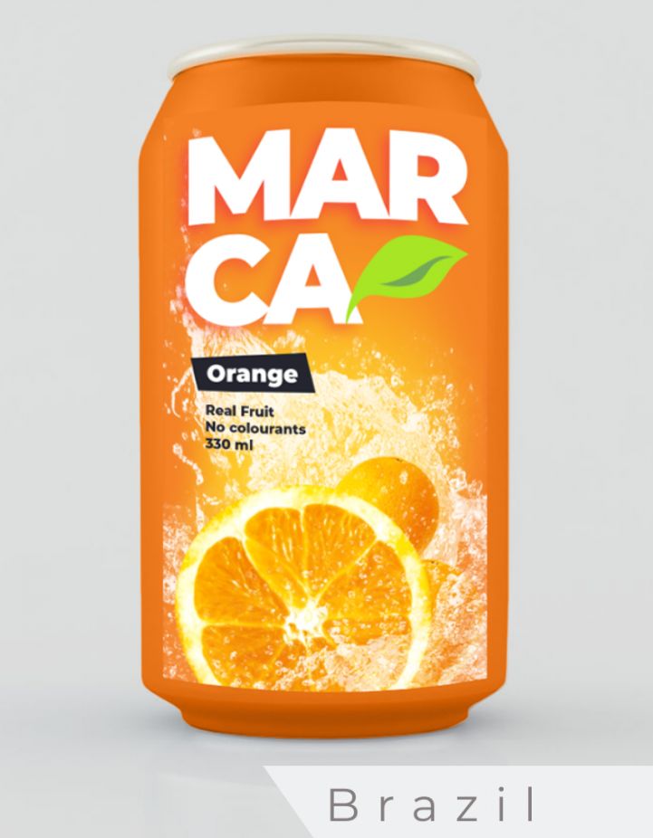 The Spanish designer has opted for the emphasis on fun. The dominant colour is a vibrant green, a colour contrasting with the orange of the fruit. This design is the most impactful and does seem to speak of some of the vibrancy of a holiday resort. Of all the countries on this list, when you visit the stores of Spain, you do expect to see a different design language than elsewhere. This is evident in the design of the carbonated orange drink proposed by the Spanish designer.