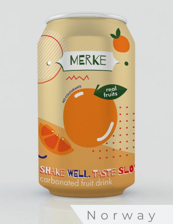 The Norwegian designer opted for a matte design with gloss accents. The matte tin will make it easier to hold, while the gloss accents will sparkle on the shelf. As with most of the designers across the world, there is an emphasis on a different shade of orange. However, the orange was not so vibrant, as the designer clearly wants to avoid hints that drink had a chemical feel. This demonstrates a clear understanding of the brand that promotes natural ingredients. The Norwegian design noted that the target market was younger – but that this target market would be active and playful. Therefore, there is a striking design of dots, stripes, etc. It could be assumed that this is a different version of the youth market than might be found in other areas of the world.