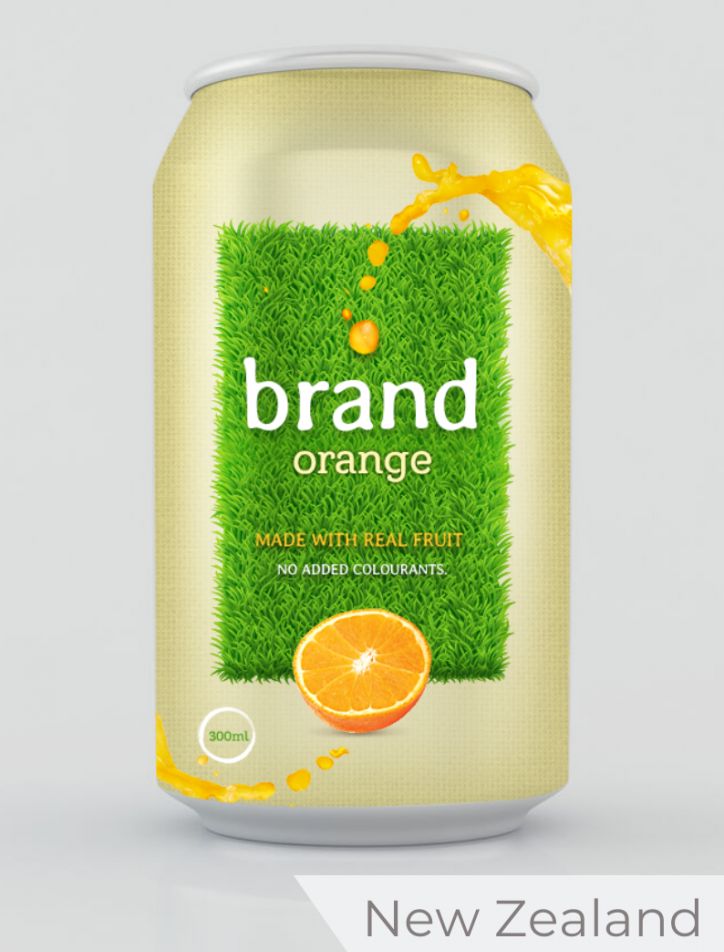 Of all the designers, the artist from New Zealand appeals most to the idea of home country. The predominance of the grass on the tin is a reflection of the outdoors culture of New Zealanders. This is also a smart way of representing the natural ingredients within the product. As with the Spanish designer, the New Zealander has used the colour contrast of green and orange to the full, but here the colours are a more muted palette. This again prevents the connection to the chemicals that go into carbonated drinks.