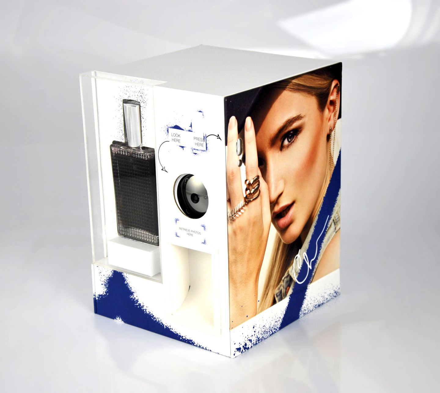 Reflecting the selfie trend, this box actually takes pictures thanks to an ultra-flat camera hidden inside, and also prints them instantly. With its expansive surface for communication materials, it is suitable for a range of different uses: fragrance or skincare launch, presentation of a makeup range with a palette inserted into a drawer or an integrated tutorial, for example.